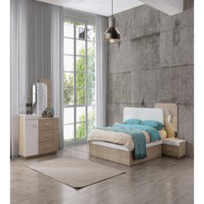Takım İçeriğiTakım içeriği 1 adet Gardırop, 1 adet Karyola, 1 adet Şifonyer+aynası ve 2 adet Komodinden oluşmaktadır.br / Karyola BaşlığıBaşlık deridir.br / Karyola ÇerçevesiSuntalam malzemeden üretilmiştir. br / Yatak Ölçüsü160 x 200 cm'dir.br / Aydınlatma ÖzelliğiKaryolanın sağ tarafında ışıklandırma sağlanmıştır. 12 Watt ışıklandırma kullanılmıştır.br / Gardırop MalzemesiSuntalam malzemeden üretilmiştir. br / Gardırop Kapak Fonksiyon2 adet sürgü kapaktan oluşmaktadır. Dolap içinde pantolonluk mevcuttur.br / Komodin MalzemesiSuntalam malzemeden üretilmiştir. br / Şifonyer MalzemesiSuntalam malzemeden üretilmiştir. Şifonyerde açılır yan kapak, 3 çekmece ve kapaklı bir bölüm mevcuttur. Üst kısmında beyaz olan kısım gizli çekmecedir. br / Baza FonksiyonuKaryola bazalı ve bazasız olarak üretilmektedir.br / Ahşap BakımıMobilyalarınızı nemli bezle silerek temizleyebilirsiniz. Direkt güneş ışığından koruyunuz. Sıcak yüzeylerin ve suyun uzun süreli yüzeye temasından kaçınınız.br / Demonte ParçalarTüm parçalar demonte gönderilir.br / Dolap Derinliği68br / Dolap Genişliği243br / Dolap Yüksekliği216br / Karyola Derinliği216br / Karyola Genişliği230br / Karyola Yüksekliği103.